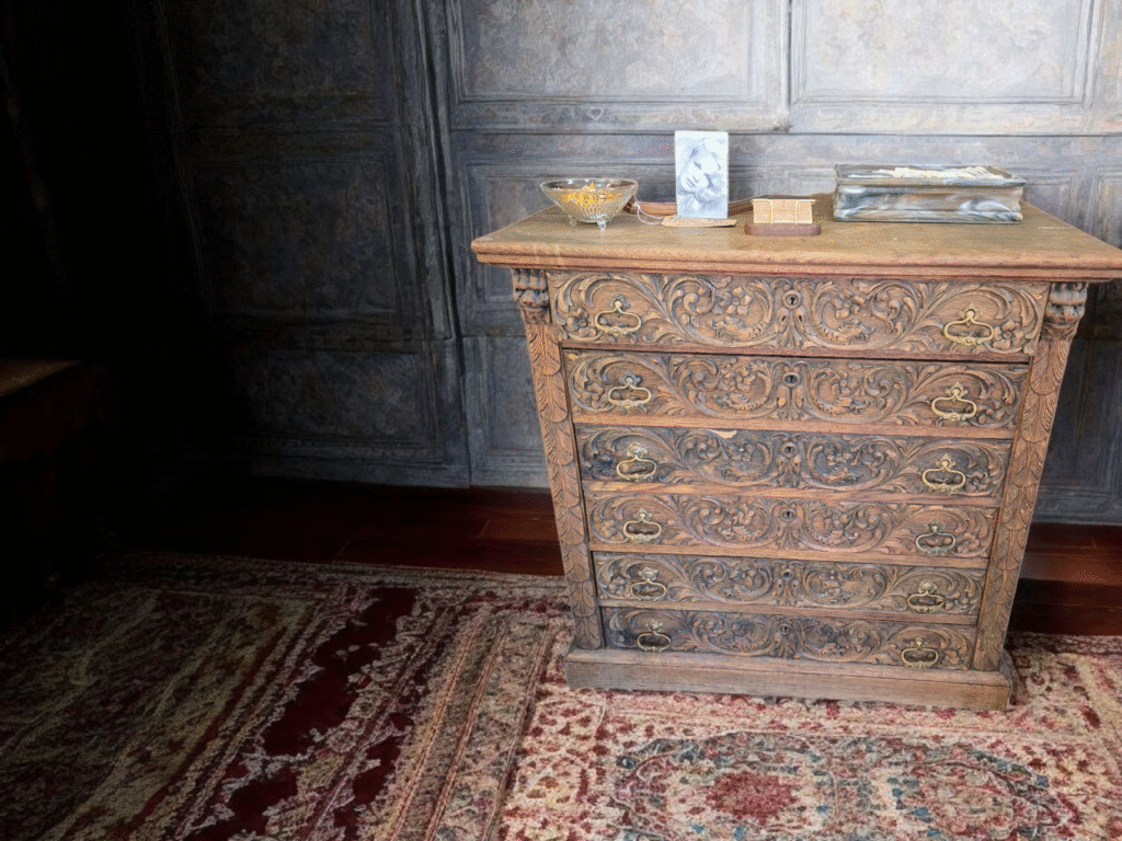 Boho Carved Cabinet with Three Shelves. $695